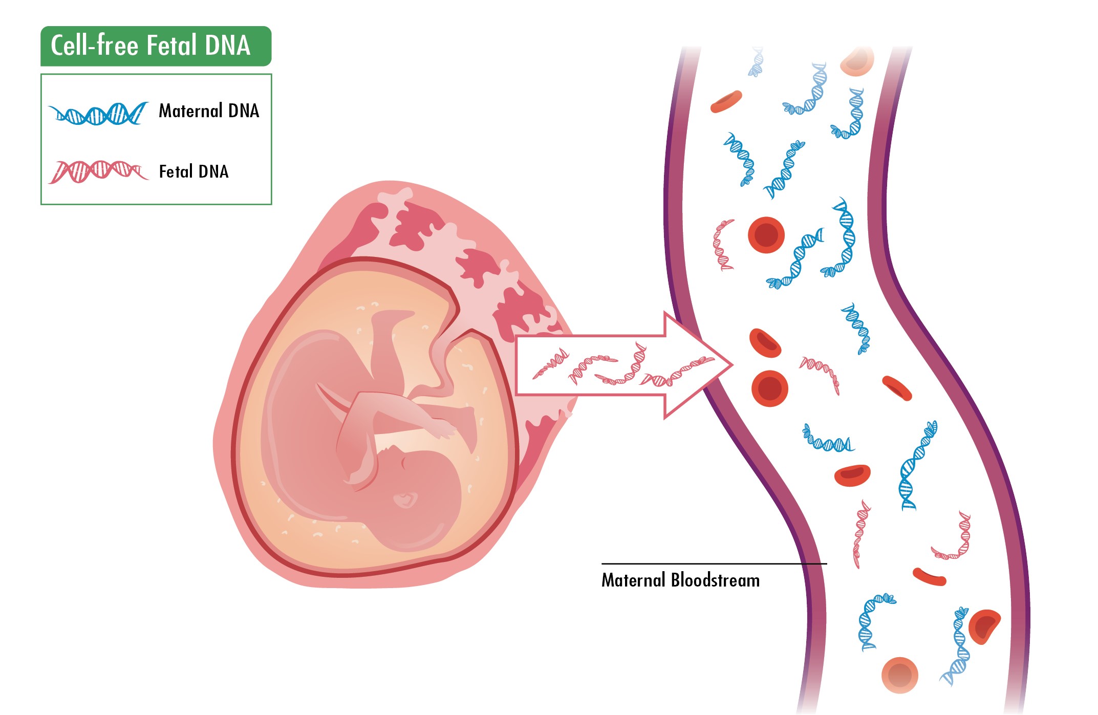 در سال 1997 دانشمندان به وجود DNA جنین در خون مادر پی بردند. این کشف مهم، اساسی شد برای ظهور روش های غیر تهاجمی تشخیص سندرم داون. بالاخره موفقیت واقعی در سال 2008 حاصل شد زمانیکه محققین، قدرت تشخیص اختلالات کروموزومی جنین را با استفاده از روش تعیین توالی DNA جنین در خون مادر، با درستی حدود 99 در صد به اثبات رساندند. اصول این روش بر پایه بررسی توالی DNA آزاد جنین در خون مادر است که از سلول های جفت آزاد می شوند.
